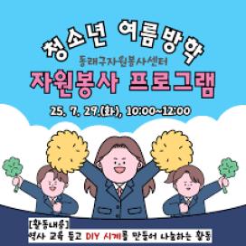 - 지역사회 봉사: 복지관, 도서관, 아동센터, 노인시설 등에서 청소, 정리, 안내, 돌봄 등의 활동 참여.